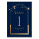 Mystical Blue Gold Sun Moon Astronomy Wedding Table Number