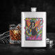 The product is a good size and came exactly as it was pictured. The lid is not attached to the flask, which could be dangerous on drunken nights... The print came out surprisingly well and looks very sharp. Would definitely recommend.