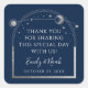 Mystical Blue Silver Sun Moon Stars Astronomy Celestial Cosmic Galaxy Space Wedding Favor Stickers features a silver sun, moon and stars frame on a blue background. Personalized with a "Thank You" message. Perfect for wedding and party favors. Personalize by editing the text in the text boxes provided. Designed for you by ©2022 Evco Studio www.zazzle.com/store/evcostudio
