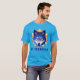 Illustration of a wolf's head in shades of blue with celestial details and patterns symbolizing mystery, spirituality, and connection with nature, surrounded by a circle of intricate golden designs.