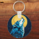 Mystical Blue Wolf Howling at a Full Moon Keychain