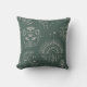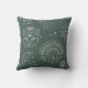 This pillow features a dark green background adorned with various mystical and celestial symbols in white. The central design includes a cat's face with an eye on its forehead, surrounded by stars and crescent moons. Above the cat's head is a hand with an eye in the palm, and to the right is a detailed mandala-like pattern with a crescent moon and stars. The pillow also includes a lotus flower and additional stars scattered throughout the design. The combination of these elements creates a whimsical and enchanting aesthetic, making it a unique and interesting piece for those who appreciate mystical and celestial themes.
