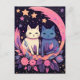 A charming postcard featuring two mystical cats surrounded by flowers, stars, and a crescent moon, perfect for sending enchanting vibes to your loved ones.