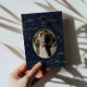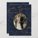 Mystical celestial wedding invitation featuring a beautiful gold crescent moon, stars and clouds on a midnight blue background paired with elegant fonts for your personalized information. This invitation comes in different background colors, burgundy and black, which you can find in our store.