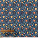 Transform your space with this enchanting celestial pattern featuring intricate suns, moons, and stars on a deep navy background. Perfect for bohemian and mystical home decor, this magical design combines whimsical celestial elements with folk art influences. The warm coral, golden yellow, and mint accents create a dreamy cosmic atmosphere ideal for bedding, tapestries, or spiritual spaces. Each element is thoughtfully detailed with spirals, dots, and flowing lines that capture the mystery of the night sky.