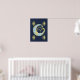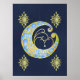 A crescent moon with swirling lines and a triqueta, the Celtic symbol for eternal love. All in the colors of moonlight, a bit of blue, a bit of gold tones, over a dark midnight blue background.