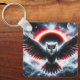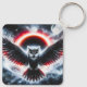 Majestic owl spreading its wings beneath a glowing celestial eclipse.