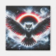 Majestic owl spreading its wings beneath a glowing celestial eclipse.