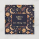 Graphic is celestial moon, stars, flowers and leaves on a smokey dark blue background. All text is easily customizable.