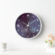 Wall clock with the inspiring words 'dream, imagine, believe, create' in pastel violet capital letters set against a starry night sky amid dusty violet and blue nebula space clouds. Mystical and magical like the mysterious realm of dreams. Large sparkling stars mark the number positions. Use the text template to add a name, empowering words, or inspirational quote. ♡ Idyllfire