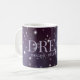 Coffee mug with the inspiring words 'dream, imagine, believe, create' in pastel violet capital letters set against a starry night sky amid dusty violet and blue nebula space clouds. Mystical and magical like the mysterious realm of dreams. Use the text template to add a name, empowering words, or inspirational quote. ♡ Idyllfire