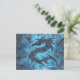 The cool blue fire against a textured stone-like background creates a powerful contrast, making this postcard perfect for fantasy lovers, dragon enthusiasts, and anyone drawn to mystical, elemental art.
