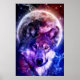 Mystical Galaxy Wolf Face with Full Moon Poster