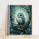 Mystical Green Forest Owl | Owl Print - Add our Mystic Forest Animal Collection to your home or kid's room. | #animalprintable #animalprintforframe, #mysticanimalprint, forest #celestialwallprint.