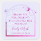 Mystical Lavender Pink Sun Moon Stars Astronomy Celestial Cosmic Galaxy Space Wedding Favor Stickers features a pink and purple sun, moon and stars frame on a pastel lavender background. Personalized with a "Thank You" message. Perfect for wedding and party favors. Personalize by editing the text in the text boxesprovided. Designed for you by Evco Studio www.zazzle.com/store/evcostudio