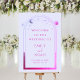 Mystical Lavender Pink Sun Moon Stars Astronomy Celestial Cosmic Galaxy Space Wedding Welcome Sign features a pink and purple sun, moon and stars frame on a pastel lavender background. Inside the frame is your custom text in elegant pink calligraphy script. Designed for you by ©Evco Studio www.zazzle.com/store/evcostudio