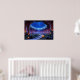Step into an otherworldly experience with mystical levitating trees in a surreal garden, where glowing flora emits soft, ever-changing hues. Floating pathways guide visitors through this enchanted realm, surrounded by a dreamlike atmosphere. Overhead, a transparent dome reveals a vivid night sky adorned with constellations, blending the magic of nature and the cosmos. This artwork captures the harmony of imagination and tranquility, inviting you to explore a garden unlike any other.