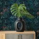 Transform your space with the enchanting "Mystical Midnight Jungle" wallpaper. This design evokes the mysterious allure of a tropical forest at night, with deep shades of teal and navy blue creating a captivating backdrop. The detailed foliage in varying hues of green and blue is interspersed with vivid accents of coral, orange, and soft white flowers. The dark, rich background enhances the vibrancy of the leaves and blossoms, adding depth and intrigue to any room. Perfect for adding a touch of exotic elegance and natural beauty, this wallpaper is ideal for living rooms, bedrooms, or any area in need of a bold, nature-inspired statement.