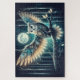 A luminous night scene captures a majestic owl perched beneath a glowing full moon, wings outstretched in a moment of quiet power. Intricate feather patterns blend folk-inspired detail with celestial motifs, creating a magical balance between nature and fantasy. Deep navy skies, soft teal highlights, and warm golden accents weave together to form an enchanting, dreamlike atmosphere. Subtle forest silhouettes fade into the background, adding depth and mystery, while tiny star-like lights shimmer throughout the scene. This artwork evokes a sense of wisdom, stillness, and wonder, perfect for those drawn to mystical woodland energy and celestial beauty. AI generated artwork.
