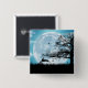 Image of a large blue full moon with clouds and stars in the background. In the foreground, the silhouettes of grass, a tree, butterflies, and a leaping rabbit.