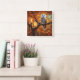 Mystical Owl with Candles Fall Foliage Square Wall Clock
