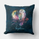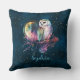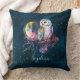 Mystical Rainbow Owl and Full Moon Celestial Throw Pillow