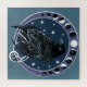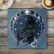 This captivating illustration features a mysterious black raven set against a celestial night sky, framed by lunar moon phases and scattered stars all in a backdrop of blue and purple. Symbolizing wisdom, transformation, and magic. The raven stands as a powerful spiritual and mythic figure, enhanced by cosmic and lunar symbolism.