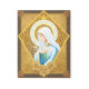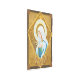 This design is inspired by a beautiful painted and embroidered decal on a Roman Catholic vestment worn for masses of the Blessed Mother. She holds a stem of lilies in her hands, a bouquet of roses frame her, a halo crowns her head.