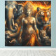 The artwork depicts a powerful and mystical scene, blending elements of spirituality, mythology, and nature. The central figure exudes a sense of serenity and strength, while the surrounding animals add to the overall aura of power and mystique.