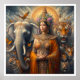 The artwork depicts a powerful and mystical scene, blending elements of spirituality, mythology, and nature. The central figure exudes a sense of serenity and strength, while the surrounding animals add to the overall aura of power and mystique.