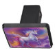Behind the unicorn, the sky bursts with fantasy—pastel sunrise clouds, cosmic jewel-toned auroras, and glittering star clusters, creating a dreamy scene that blends strength with softness. It’s the perfect blend of fairy tale and horsepower.