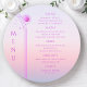 Mystical Sunset Pink Sun Moon Stars Space Wedding Menu Cards features simple pink and purple stars on a pastel beach sunset background with your menu details in the center in modern purple calligraphy script. Personalize by editing the text in the text boxes provided. Designed by Evco Studio www.zazzle.com/store/evcostudio