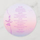 Mystical Sunset Pink Sun Moon Stars Space Wedding Menu Cards features simple pink and purple stars on a pastel beach sunset background with your menu details in the center in modern purple calligraphy script. Personalize by editing the text in the text boxes provided. Designed by Evco Studio www.zazzle.com/store/evcostudio