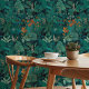 Transform your space into a serene sanctuary with the "Mystical Teal Jungle" wallpaper. This breathtaking design captures the essence of a lush tropical jungle, featuring a rich palette of teal and emerald greens. The intricate detailing of various tropical leaves and foliage is highlighted by vibrant bursts of orange, coral, and white flowers, creating a dynamic and captivating scene. The deep, moody background enhances the vivid greenery and floral accents, making this wallpaper a stunning focal point for any room. Perfect for living rooms, bedrooms, or creative spaces, the "Mystical Teal Jungle" wallpaper brings a touch of exotic elegance and natural beauty into your home.