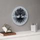 Add a touch of ancient mystery and spiritual depth to your space with this captivating wall clock featuring a dark, stylized Tree of Life illustration. This unique design showcases a powerful silhouette of a tree with extensive, intertwining roots and wide-reaching branches, symbolizing the interconnectedness of all things and the balance between earth and sky. Set against a subtle light grey background scattered with shimmering, ethereal particles, the tree is adorned with vibrant, glowing orange and yellow elements that suggest mystical energy or magical fruit. The strong vertical symmetry of the artwork creates a sense of harmony and ancient wisdom. Perfect for adding a touch of fantasy, spiritual symbolism, or unique artistic flair to your living room, office, bedroom, or meditation area. This clock is more than just a timepiece; it's a piece of symbolic art that evokes themes of growth, balance, and the cycles of nature. A striking focal point and a thoughtful gift for anyone drawn to mythology, spirituality, or dark fantasy aesthetics.