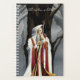 A wise and enigmatic wizard stands beneath a towering, ancient tree, cloaked in flowing white robes trimmed with rich red and gold. His staff, crowned with a glowing gem, hints at powerful magic, while a shadowy raven perches just behind his shoulder like a silent guardian or omen. The fog-draped forest wraps the scene in mystery, evoking themes of ancient knowledge, solitude, and arcane power. Perfect for fantasy lovers, gothic art enthusiasts, and those drawn to magical worlds filled with hidden stories.