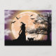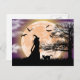 Mystical Witch, Black Cat, Full Moon Postcard