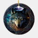 Mystical Wolf Moon Mandala Ceramic Ornament