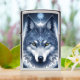 Ethereal depiction of a wolf with cosmic features and glowing eyes, set against a starry night sky. Artistic design with intricate details symbolizing mystery and spirituality.