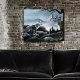 Two majestic wolves stand watch among rugged stone cliffs as a misty medieval castle rises in the distance. Surrounded by mountains and dark forest, the scene captures a quiet moment of vigilance and mystery, as the wolves are guardians of the ancient stronghold. This atmospheric fantasy wildlife artwork blends nature, legend, and medieval imagery, making it perfect for wolf lovers, fantasy fans, and those drawn to mystical landscapes.