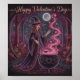 Moonlit Valentine scene: a witch stirs a heart-swirling love potion in a cauldron amid an enchanted forest — romantic, mystical illustration.