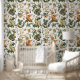 A menagerie of fantastical creatures — including dragons, unicorn-like horses, antlered deer-serpents, and whimsical fox-like beasts with lush swirling foliage and blooming flowers.