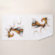 An abstract art design of a mythical flying dragon in red, gold and black, also leaving an image of their flight path.
