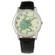This very cute little green dragon is stretching his wings and smiling, all his baby dragon scales are emphasised by a darker green outline that’s softly blended. He’s a special little green dragon that I created in pencil some time ago, I digitally enhanced the image of the drawing to become a vibrant green colour. The happy cute dragon is unique and completely original, he’s sure to get lots of attention wherever you go, This little dragon looks great on this cool watch with numbers and can only be seen on products produced by artoriginals. This is a customizable dragon watch, you can personalize it with your own text.
