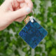 This keychain features a dark mushroom forest fantasy scene with enchanted glowing fungi in shades of blue and green. The mushrooms vary in size and shape, some small and delicate, others tall and towering. The glowing mushrooms form a canopy over a path that leads deeper into the fungi wonderland. Add your contact info to the template on the back in case you lose your keys.