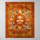 Beautiful wall art print features an AI-generated mythological Sun Face deity on vintage book cover background.