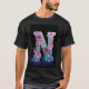 The T-shirt is having letter N on it with lots of bright color flowers on it which is giving an effect of 3d giving a elegant look There is a print of letter N with lots of flower and beautiful pearls around it and trying to say the one whose name starts with letter N is a beautiful person with beautiful heart like pearls beautiful and precious and a pleasant personality like flowers. always smiling and bubbly.
