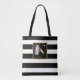 N Gold Floral Monogram | Black White Gold Stripes Tote Bag