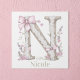 This personalized wall art features a whimsical letter design, perfect for adding a touch of charm to a child's bedroom. The artwork is customizable with any name, making it a unique and thoughtful gift. The soft color palette and delicate details create a sweet and inviting atmosphere.