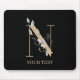 Letter N monogram floral. Letter N in golden brown texture accented with green watercolor compound leaves, flower blossoms and gold dust. Persoalized with name in matching font.